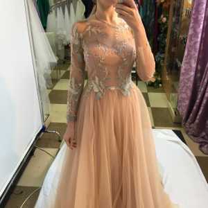 Это чудесное платье ярко переливается, просто горит жаром!:-) Покупали в свадебном салоне, надето было 1 раз на выпускной.