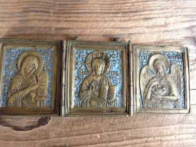 Складень 3-х створчатый в хорошем сохранении, эмаль на месте всё видно. На смс не отвечаю. Звоните.