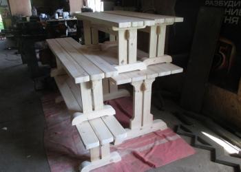 Комплекты садовой мебели (В наличии и на заказ) из дерева 2 лавки и стол. цена 15500 можно как с покраской так и без.